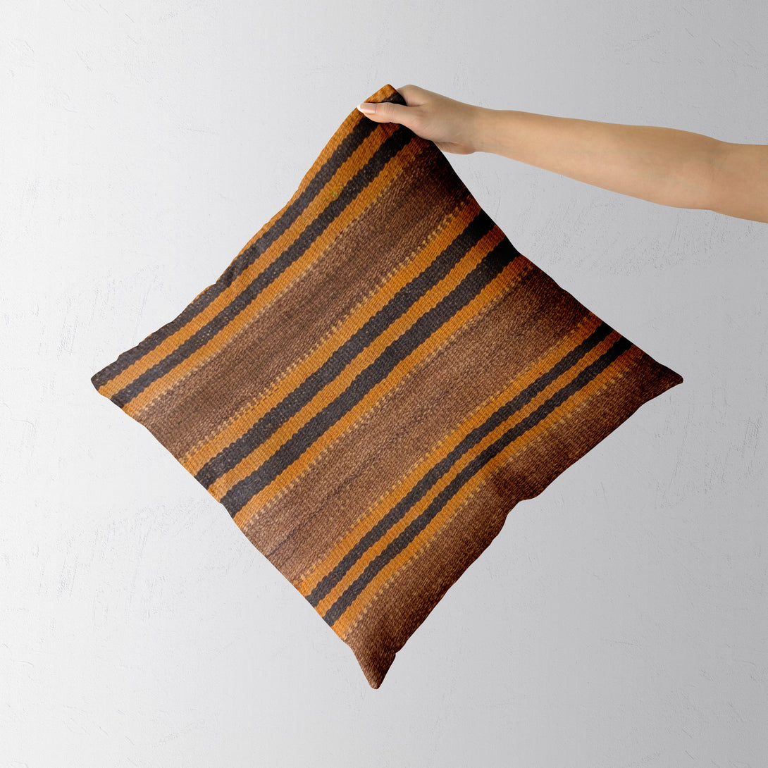 This handwoven Plushify cushion cover by Imaco Rugs is a one-of-a-kind home décor item. Made from genuine Turkish wool kilim and cotton backing, the 50cm x 50cm cushion cover features a timeless black, mustard and brown stripes pattern. Only one in stock, it's the perfect addition to your living space.
