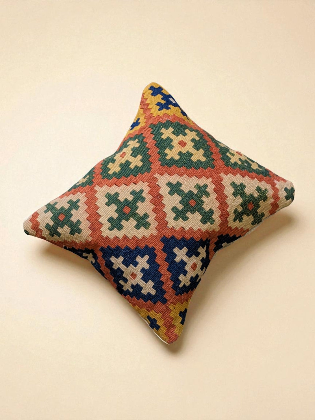 Turkish Kilim Vintage Cushion Cover - 40 x 40 cm