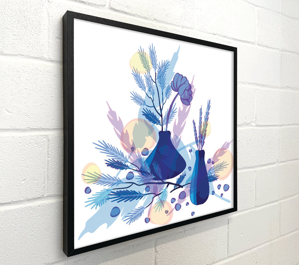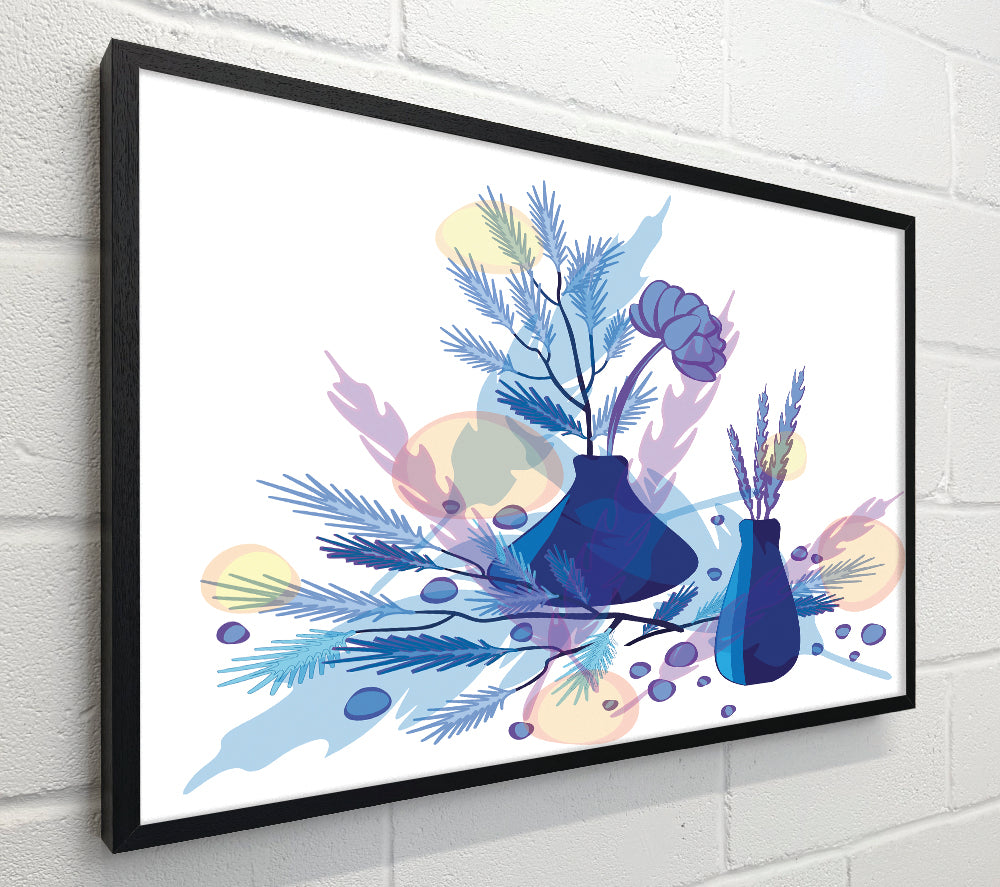 Two Blue Vases Of Flowers