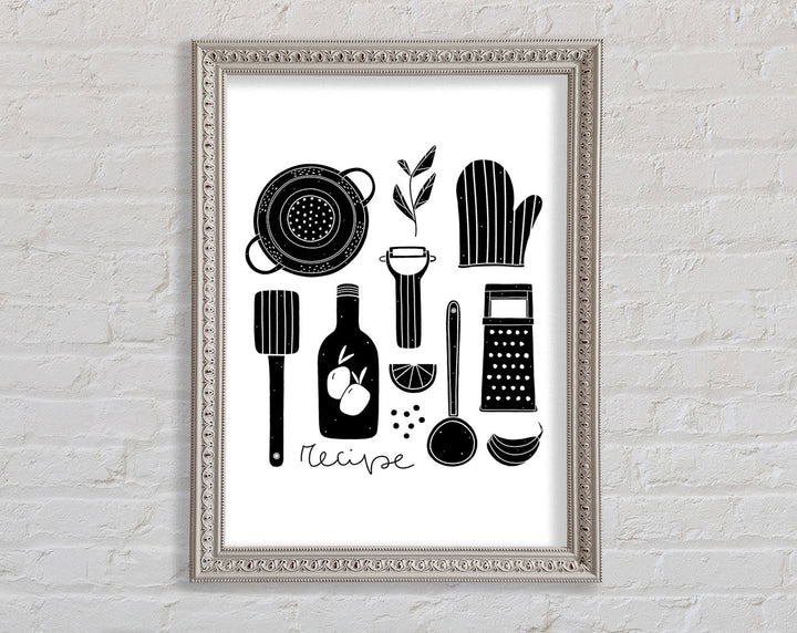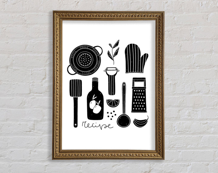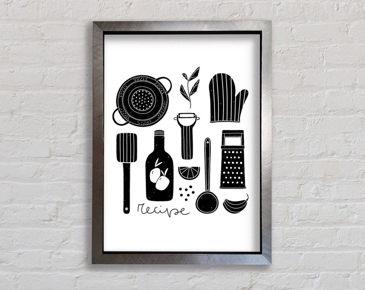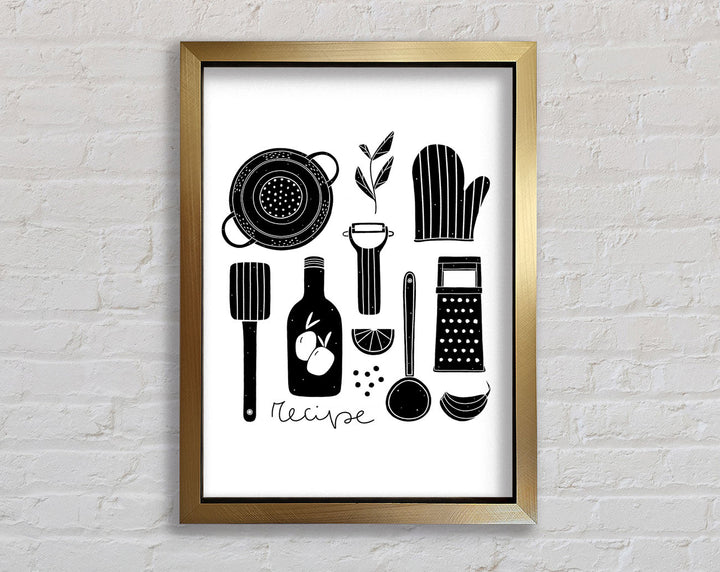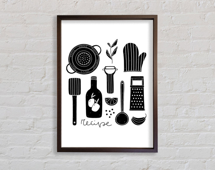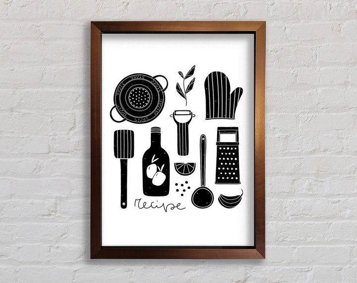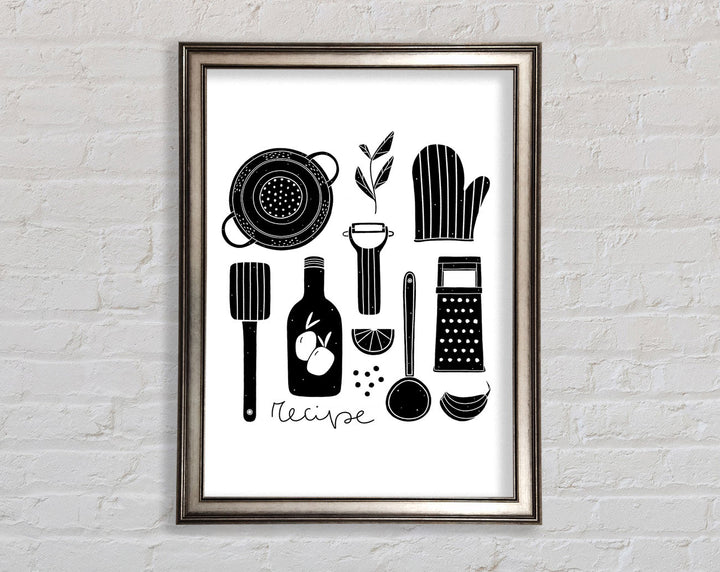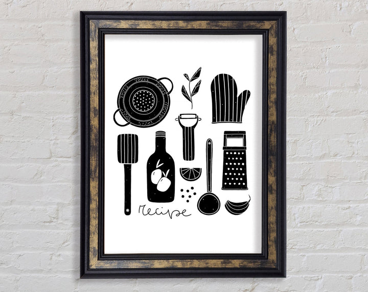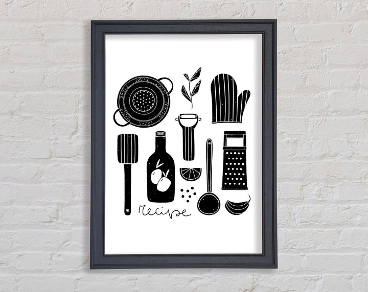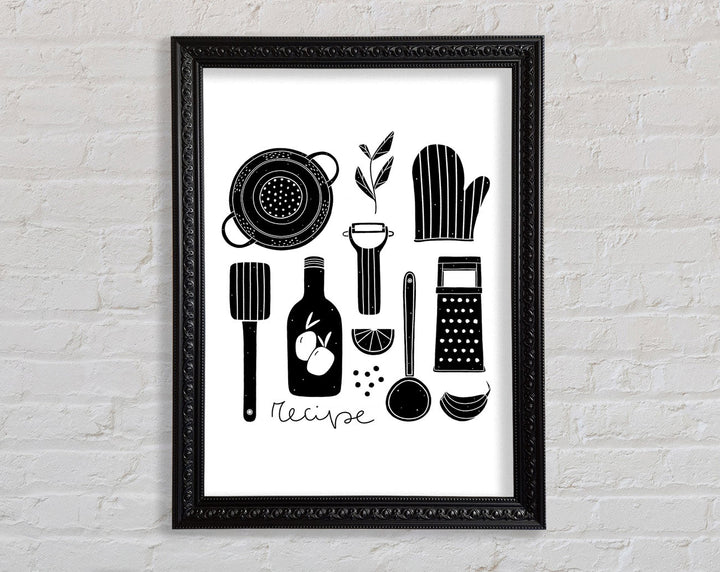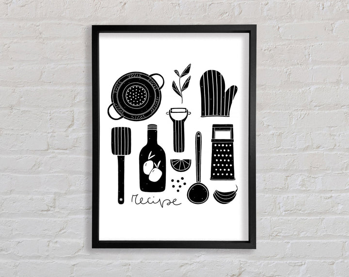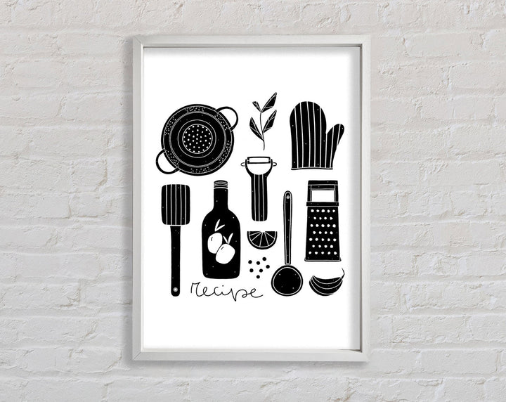 Gerahmter Druck „Utensils 3“, in mehreren Rahmenfarben erhältlich. Fertig zum Aufhängen aus der Schachtel und handgefertigt im Vereinigten Königreich.