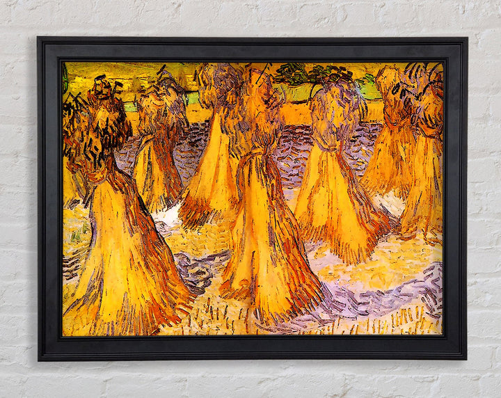 Gerahmter Druck „Van Gogh Field With Stacks Of Wheat“, erhältlich in mehreren Rahmenfarben. Fertig zum Aufhängen aus der Schachtel und handgefertigt im Vereinigten Königreich.