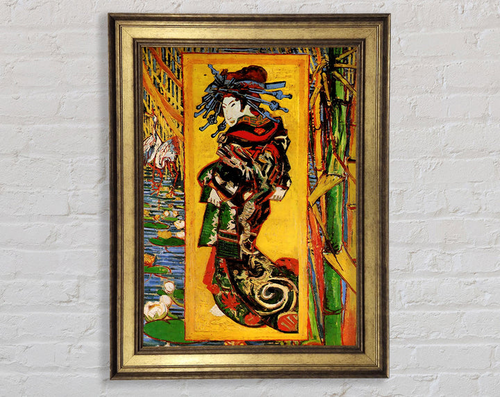 Gerahmter Druck „Japonaiserie Oiran After Kesa Eisen“ von Van Gogh, erhältlich in mehreren Rahmenfarben. Fertig zum Aufhängen aus der Schachtel und handgefertigt im Vereinigten Königreich.