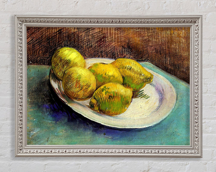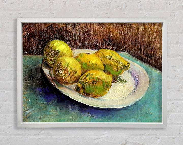 Gerahmter Druck „Stillleben mit Zitronen auf einem Teller“ von Van Gogh, erhältlich in mehreren Rahmenfarben. Fertig zum Aufhängen aus der Schachtel und handgefertigt im Vereinigten Königreich.