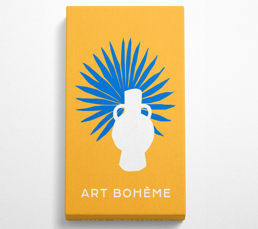 Vase And Leaf Summer Mustard, breite Leinwand, gedruckt auf beschichteter Polyester-Leinwand. Auf einem 44 mm großen Kastenrahmen montiert, fertig zum Aufhängen.