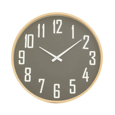 This two-tonal wall clock will make a timeless addition to a variety of home office decors. Made from sturdy wood and complete with premium quality glass, the face of this analogue clock in the black finish is contrasted with natural round trim.
