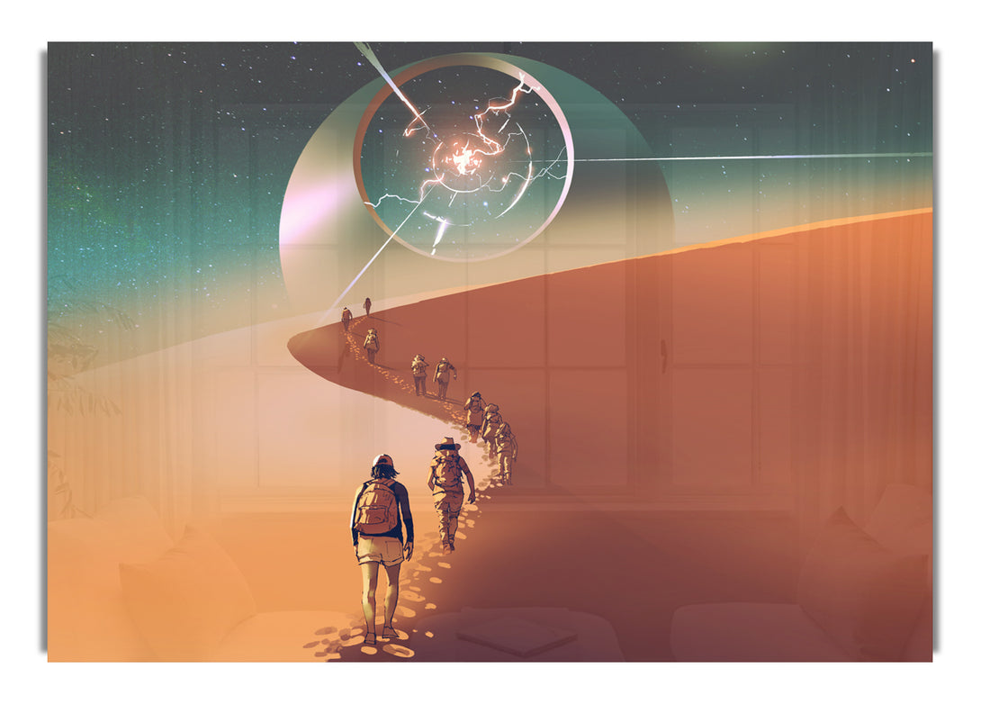 Acryldruck „Walking To The Fallen Star“, UV-gedruckt auf 5 mm dickes Acrylglas. Wird mit allem geliefert, was Sie zum Aufhängen an die Wand brauchen.