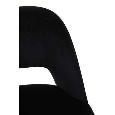 This black velvet bar chair will make a chic statement with the elegant low-back construction and a cut-out design. The foam-padded upholstery and gold finish footrest add extra comfort, while the slanted legs contribute to mid-century style.