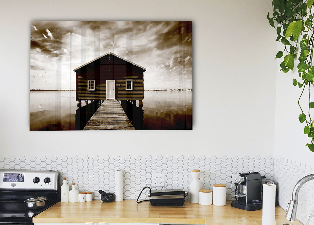 Water House Coco-Acryldruck, UV-gedruckt auf 5 mm dickes Acrylglas. Wird mit allem geliefert, was Sie zum Aufhängen an Ihre Wand benötigen.