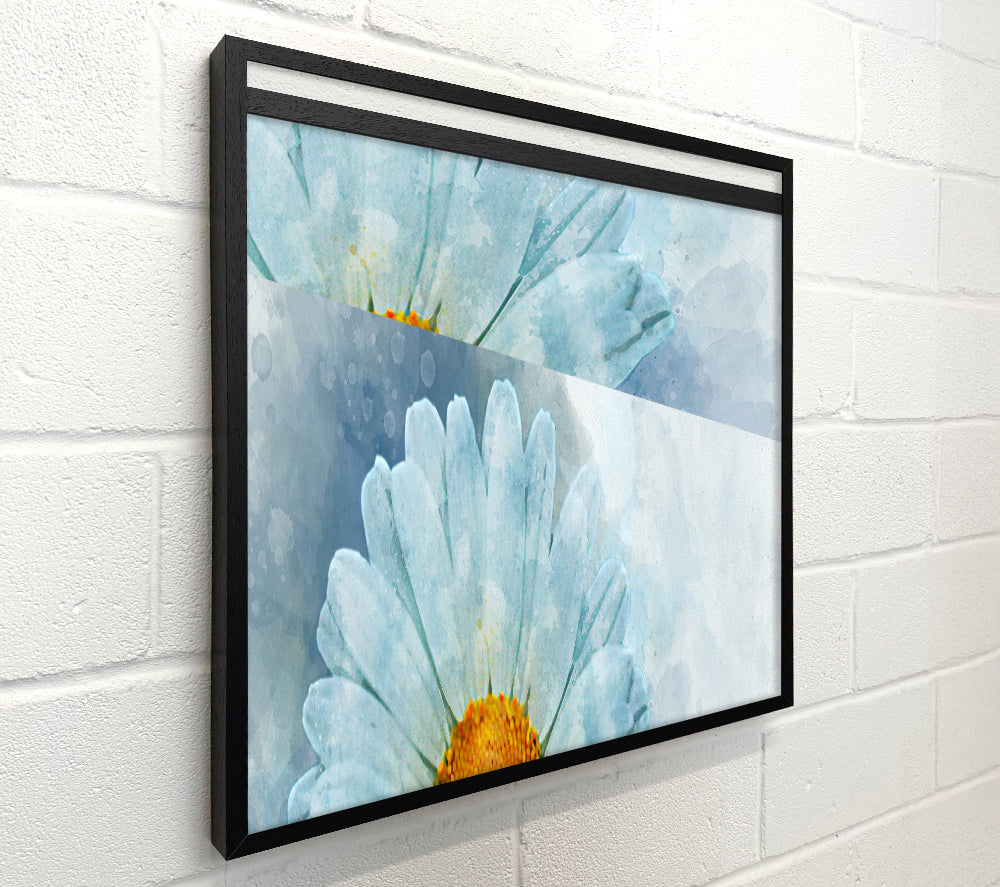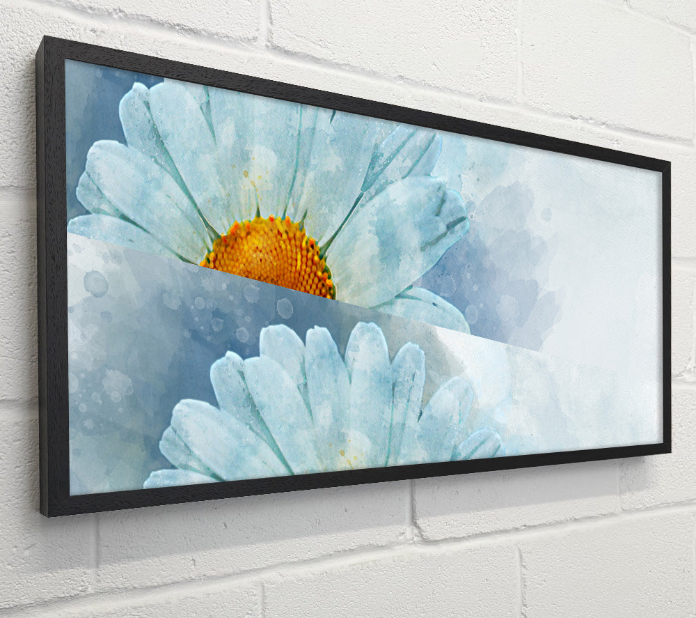 Quadratische Leinwand mit Aquarellmotiv „Daisy Beauty“, gedruckt auf beschichteter Polyester-Leinwand. Auf einem 44 mm großen Kastenrahmen montiert, fertig zum Aufhängen.