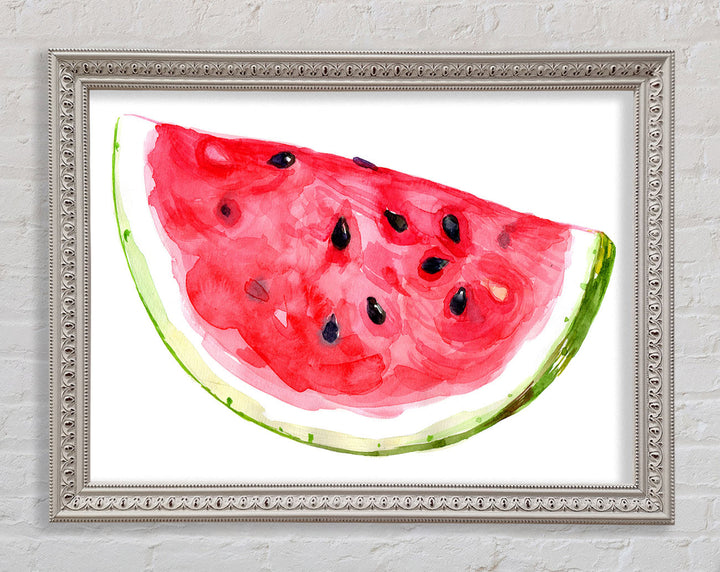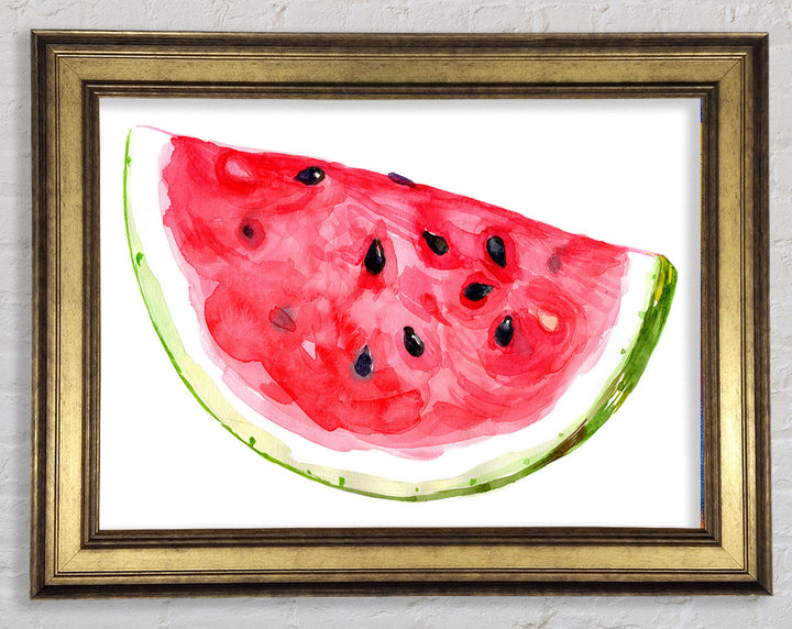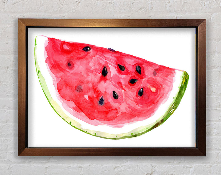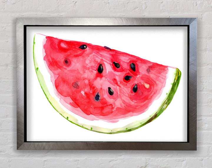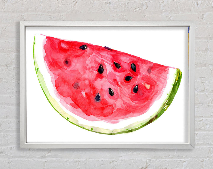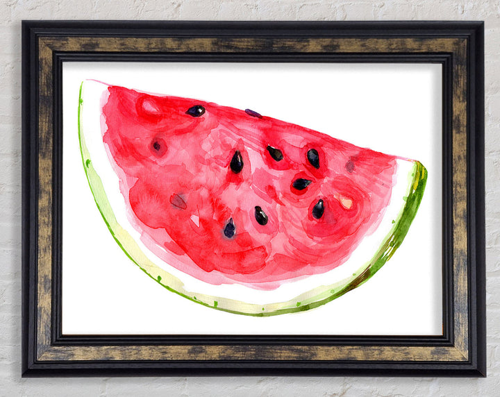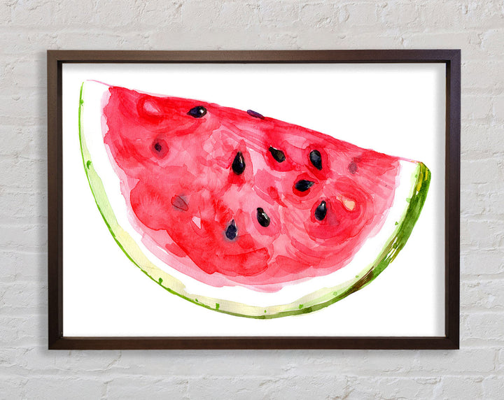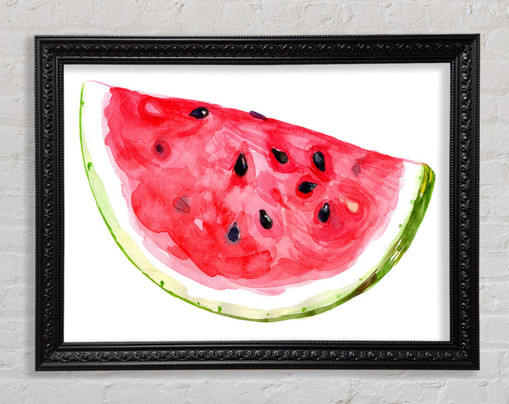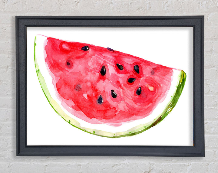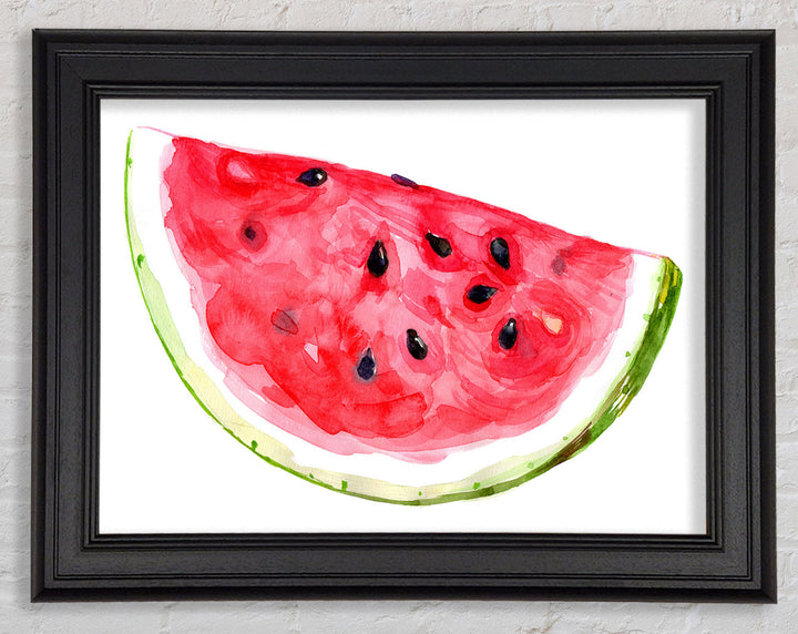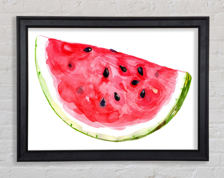 Gerahmter Druck mit Aquarell-Wassermelone, erhältlich in mehreren Rahmenfarben. Fertig zum Aufhängen aus der Schachtel und handgefertigt im Vereinigten Königreich.