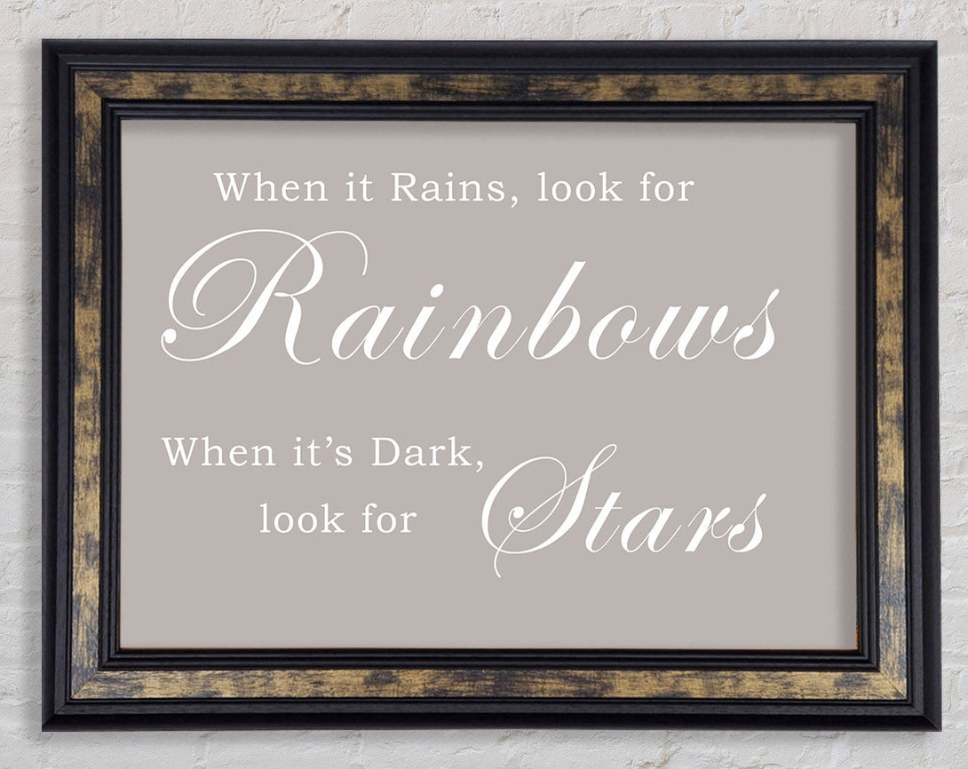When It Rains Look For Rainbows Beige Framed Print