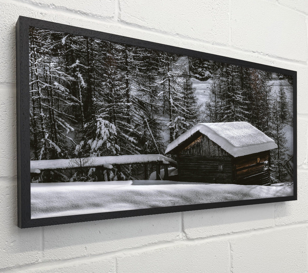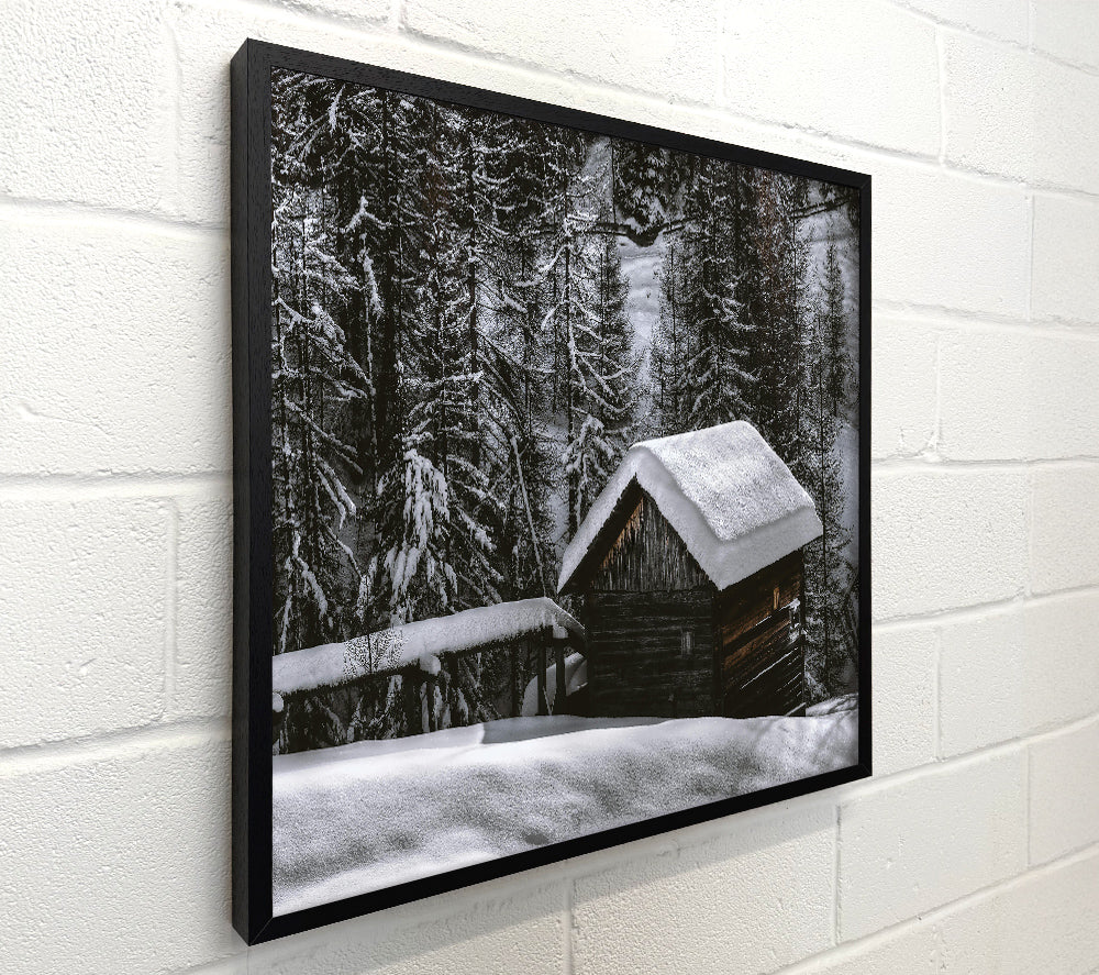 White Cabin Under Snow