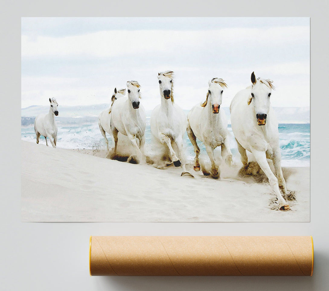 Our White Ocean Horses Poster is printed 260 GSM premium lustre paper that offers vibrant colours and exceptional detail.