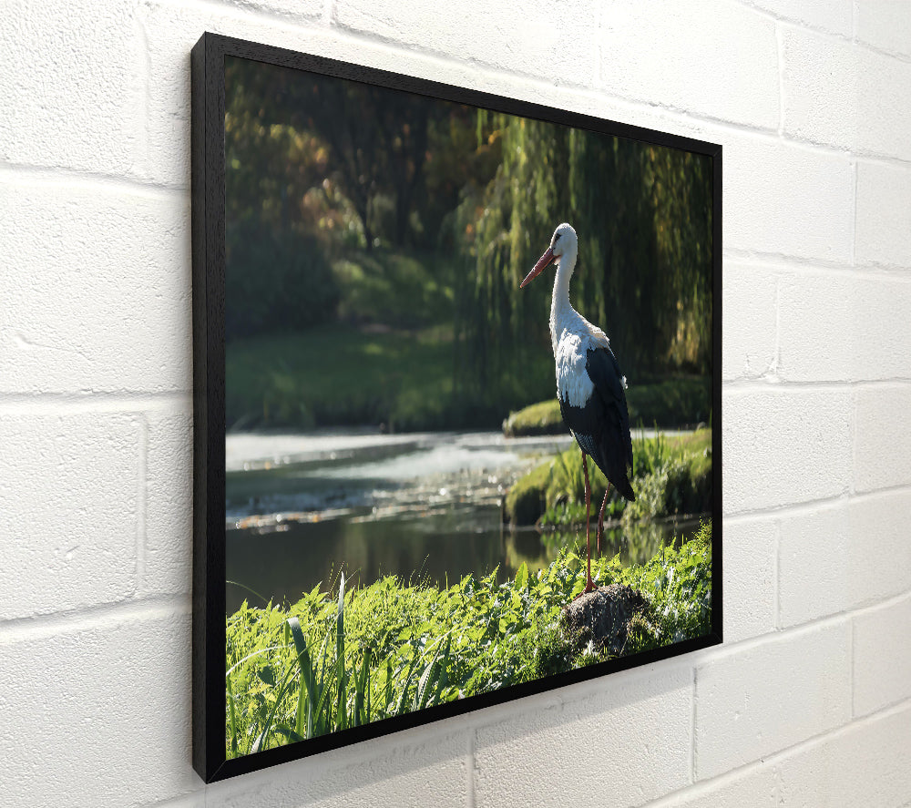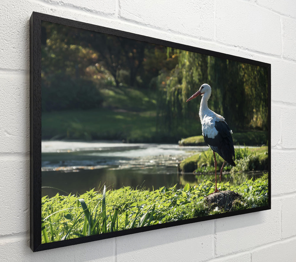 White Stork By The Pond.