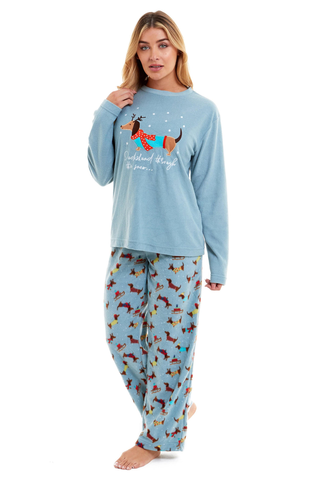 Women's Cosy Dachshund Polar Fleece Pyjama Set Soft Warm Winter Lounge Sleepwear Perfect Christmas Gift Sizes Small to X Large by Daisy Dreamer