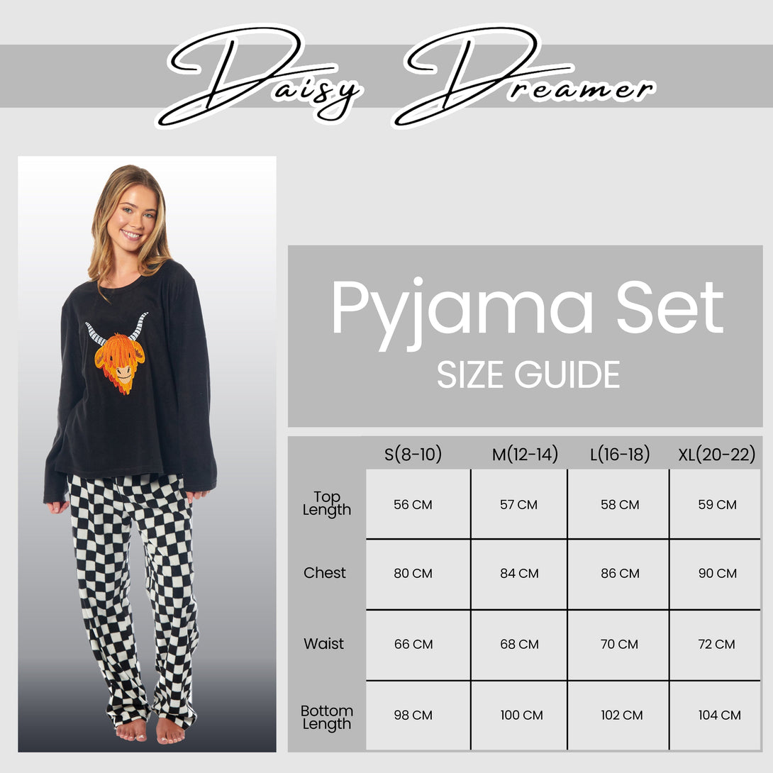 Women's Highland Cow Thermal Fleece Pyjamas Set Soft Warm Winter PJs Animal Print Loungewear Sleepwear Long Sleeve Top and Bottom by Daisy Dreamer