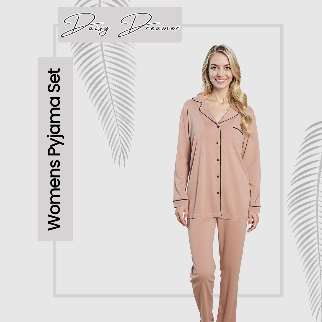 Choose the Daisy Dreamer Women's Pyjama Set for its combination of soft-stretch fabric, elegant button-up design, and flattering fit—a perfect blend of comfort and style. Ideal for personal use or as a thoughtful gift, this set is a year-round staple. Trust in Daisy Dreamer's commitment to quality and customer satisfaction for a truly delightful experience.