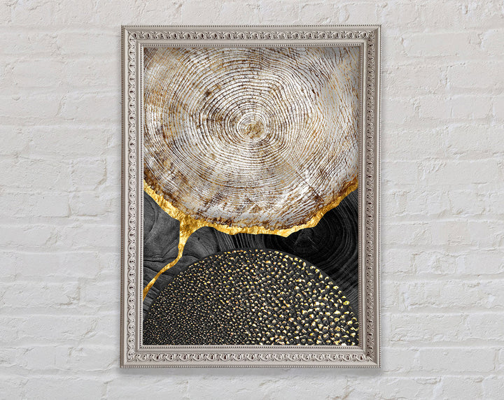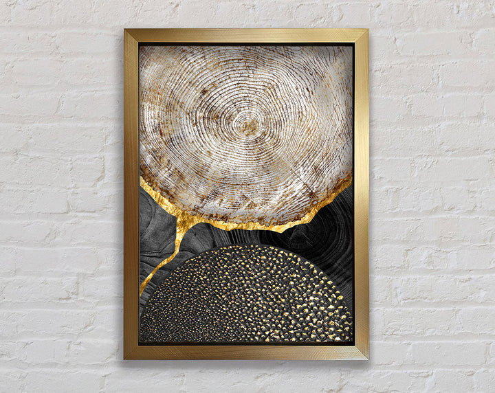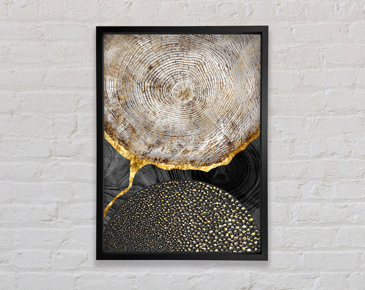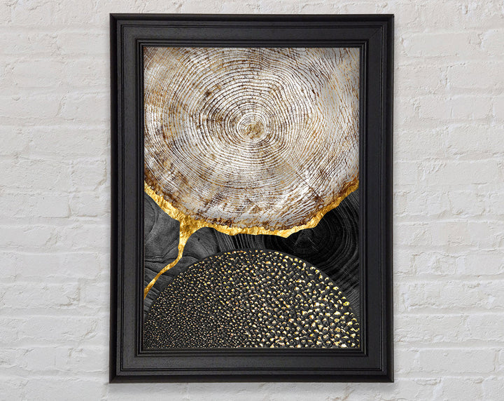 Wood Effect With Gold And Black Framed Print