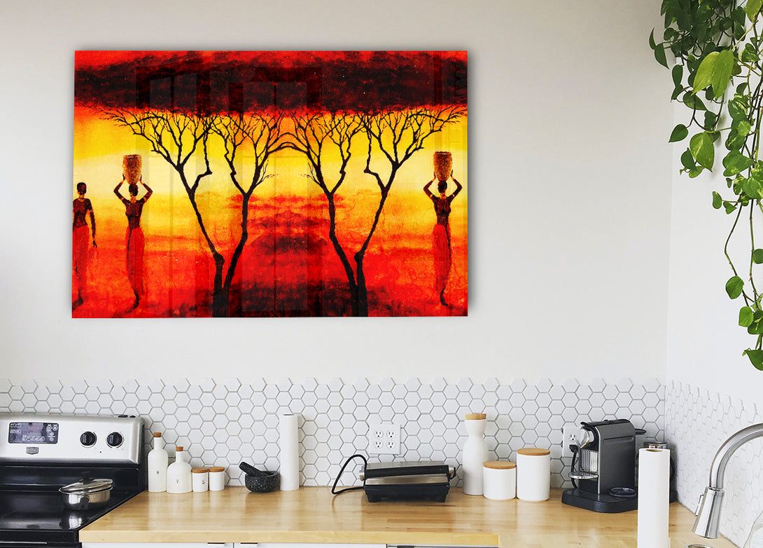 Ethnischer Acryldruck „Working In The Blazing Red Fields“, UV-gedruckt auf 5 mm dickes Acrylglas. Wird mit allem geliefert, was Sie zum Aufhängen an die Wand brauchen.