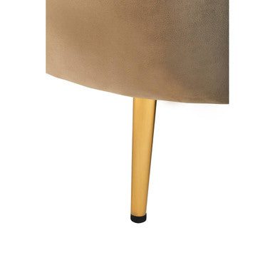 This three seater will add a touch of sophistication to any room with soft mink velvet upholstery, while the curved shape creates an inviting aesthetic. Resting atop tapered gold finish legs, this sofa creates a modern art deco aesthetic.