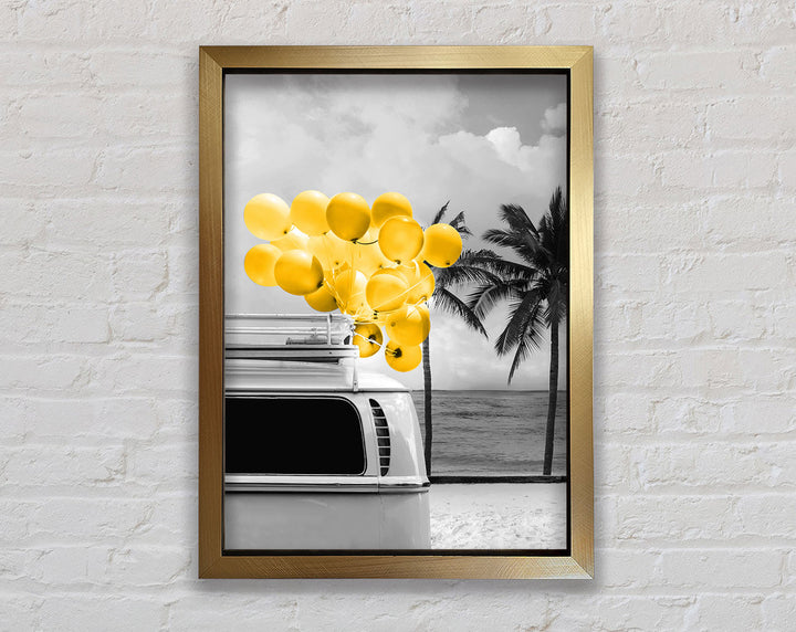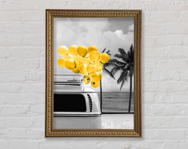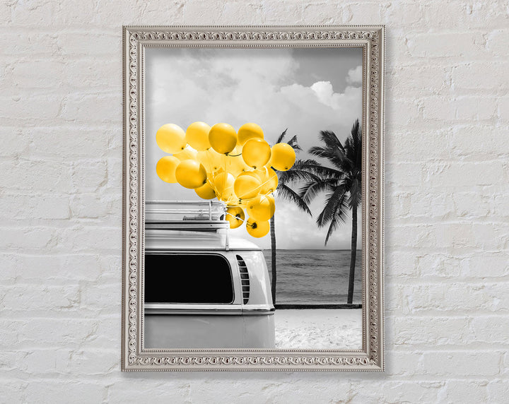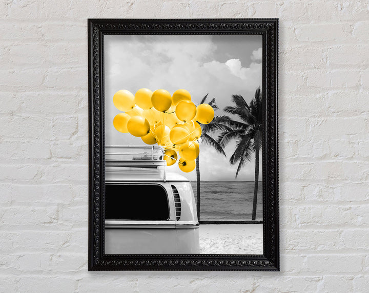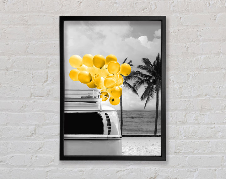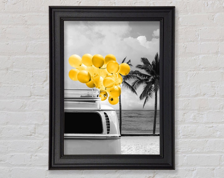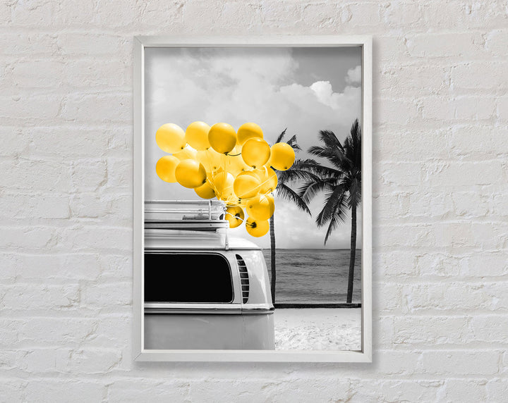 Brighten up your space with the Yellow Balloon Camper Van Framed Print, a charming piece of framed art that captures the joy of adventure. This delightful print features a classic camper van with a playful yellow balloon, perfect for adding a touch of whimsy to any room. Available in six sizes, from small to oversized, this artwork can fit any wall space perfectly. Choose from a variety of colors to match your decor style. Each piece is handmade in the United Kingdom, ensuring top-notch quality and craftsmanship. Plus, it comes ready to hang, making it easy to add a vibrant and cheerful accent to your home.