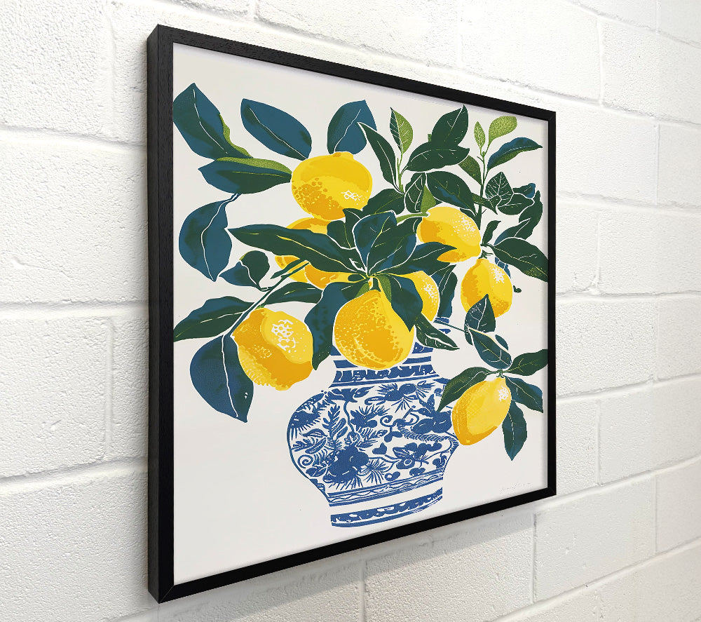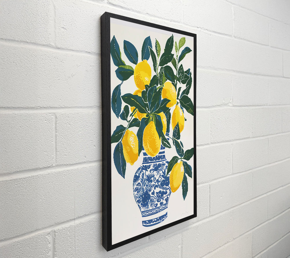 Yellow Lemons In Blue Vase.