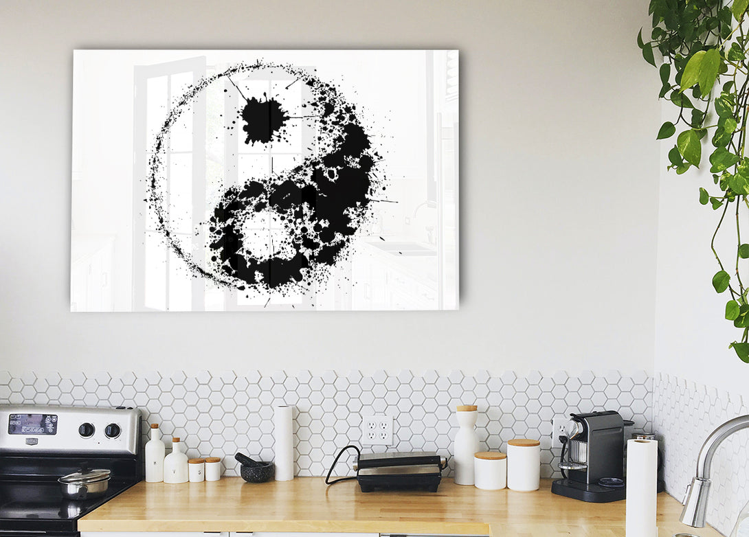 Yin Yang Splash-Acryldruck, UV-gedruckt auf 5 mm dickes Acrylglas. Wird mit allem geliefert, was Sie zum Aufhängen an Ihre Wand benötigen.