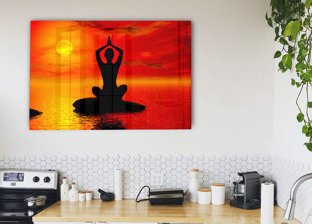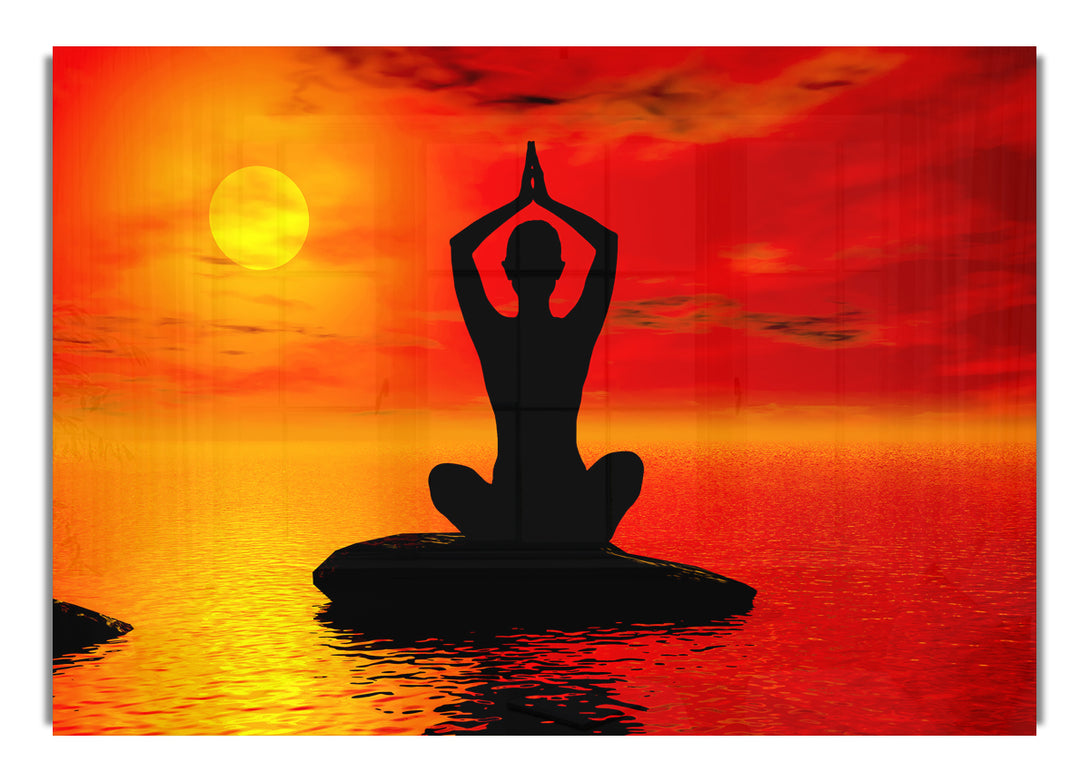 Yoga Ocean Sun Blaze-Acryldruck, UV-gedruckt auf 5 mm dickes Acrylglas. Wird mit allem geliefert, was Sie zum Aufhängen an Ihre Wand benötigen.