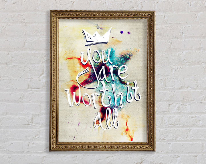 Gerahmter Druck „You Are Worth It“, erhältlich in mehreren Rahmenfarben. Fertig zum Aufhängen aus der Schachtel und handgefertigt im Vereinigten Königreich.