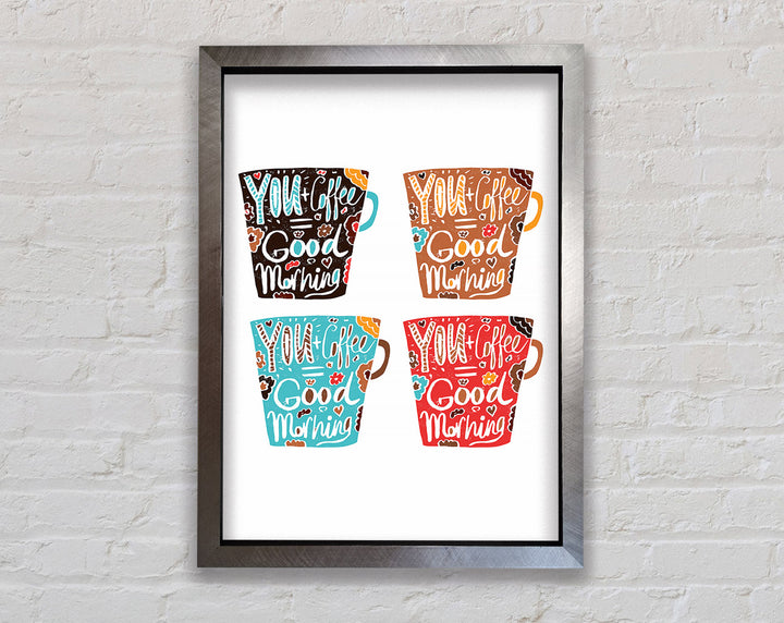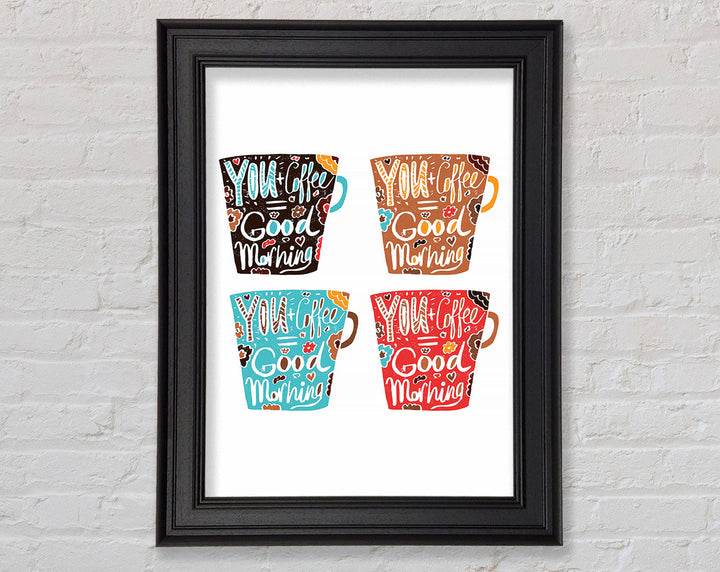 Gerahmter Druck „You Coffee Good Morning“, erhältlich in mehreren Rahmenfarben. Fertig zum Aufhängen aus der Schachtel und handgefertigt im Vereinigten Königreich.