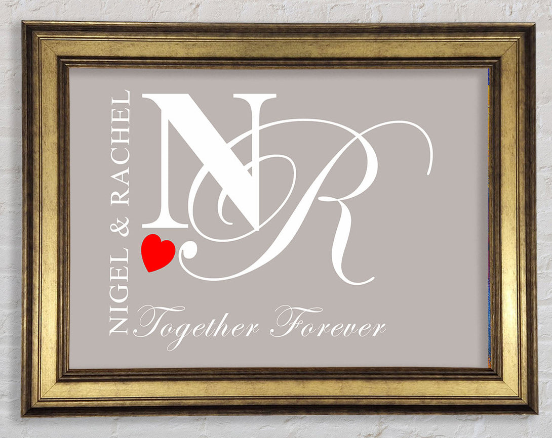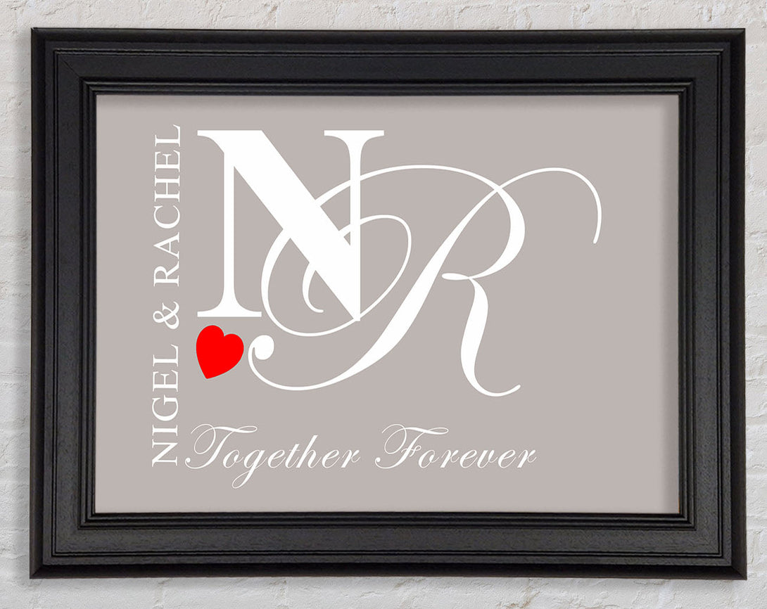 Your Names And Initials Together Forever Beige Framed Print