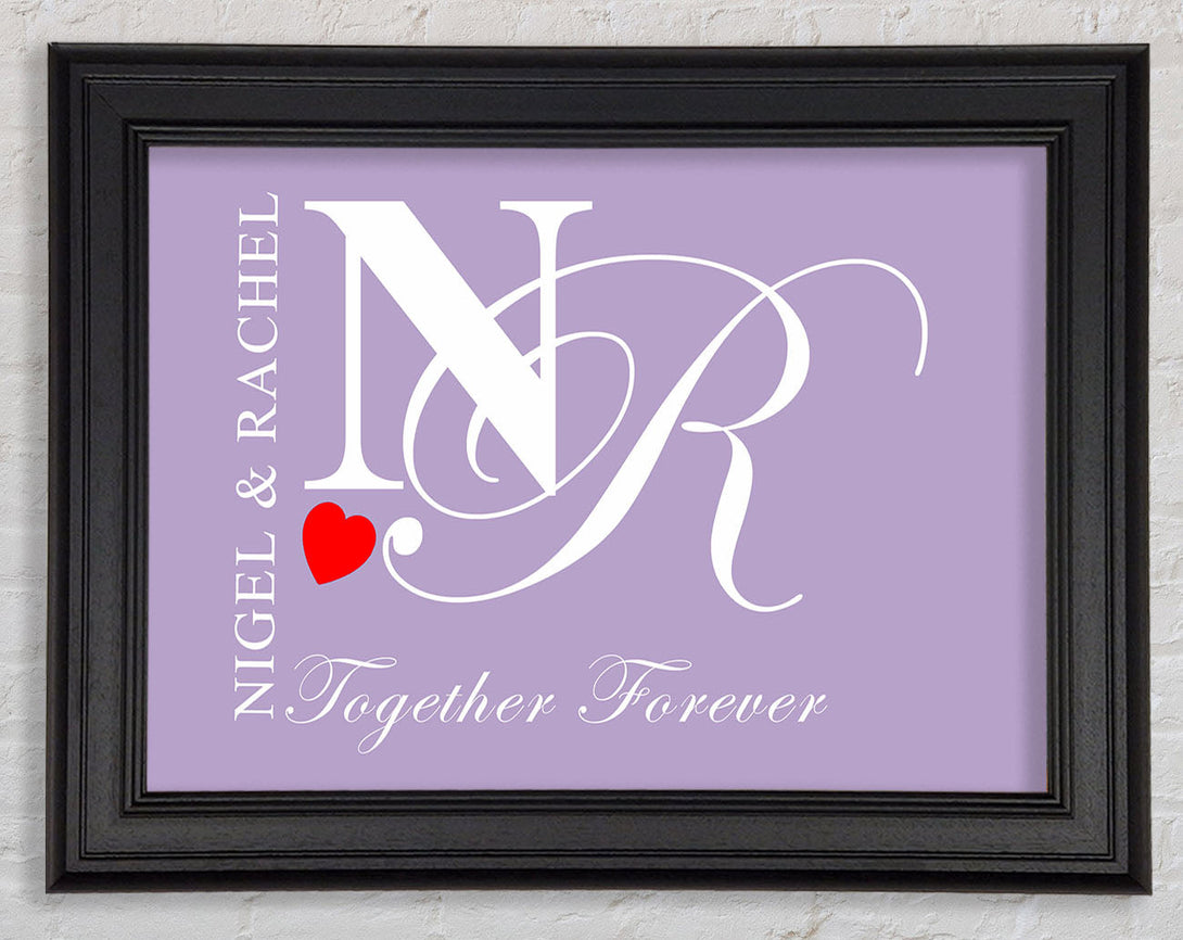 Your Names And Initials Together Forever Lilac Framed Print
