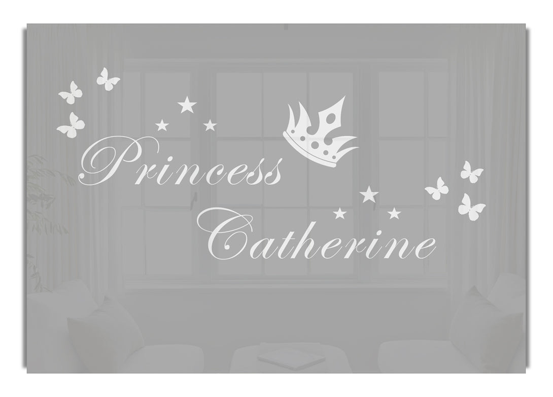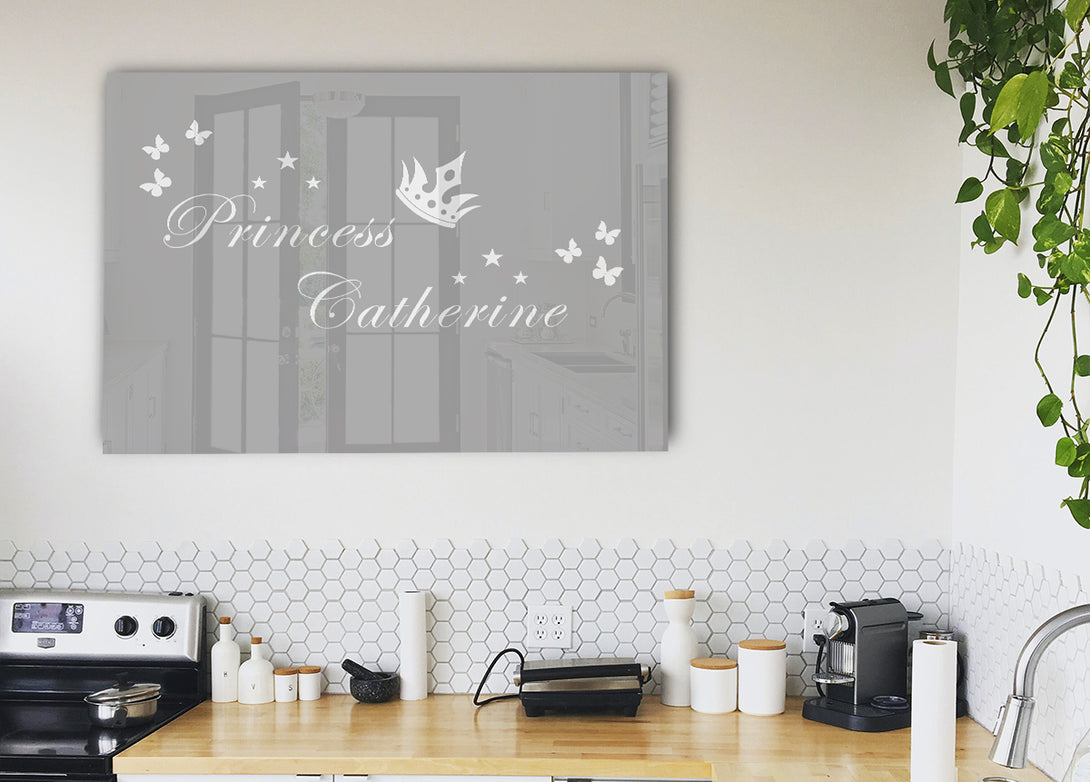 Ihr eigener Name, Prinzessin 2, grauweißer Acryldruck, UV-gedruckt auf 5 mm dickes Acrylglas. Wird mit allem geliefert, was Sie zum Aufhängen an Ihre Wand benötigen.