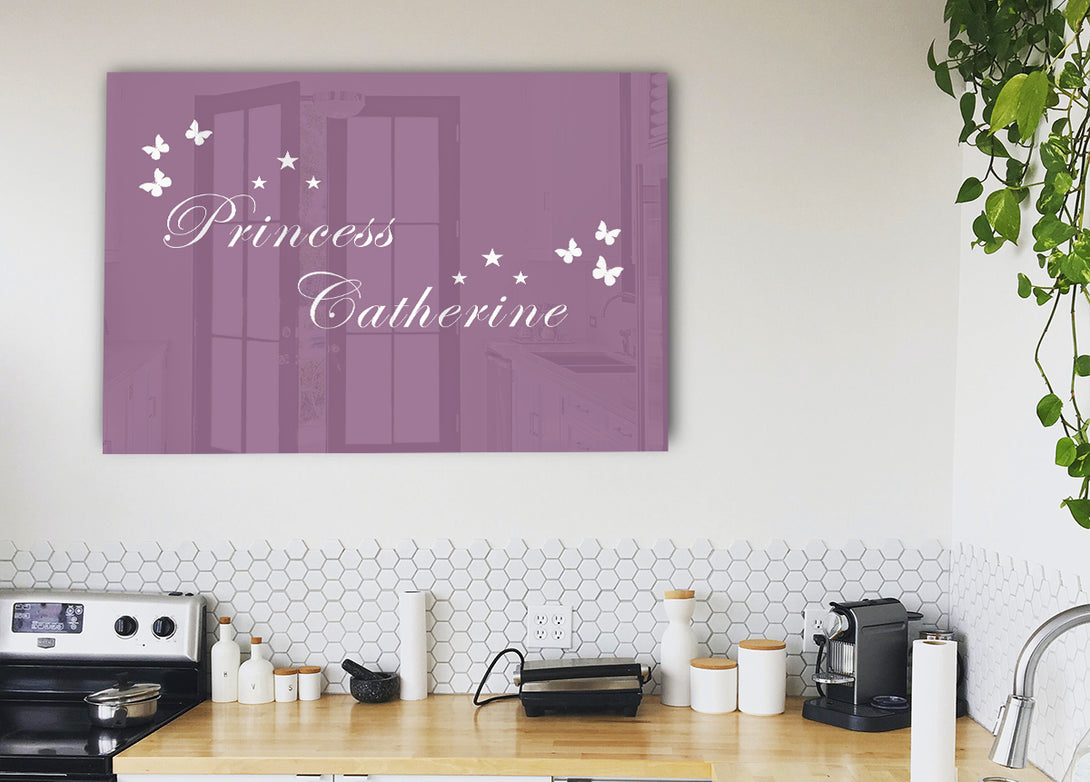 Acryldruck „Your Own Name Princess Dusty Pink“, UV-gedruckt auf 5 mm dickes Acrylglas. Wird mit allem geliefert, was Sie zum Aufhängen an die Wand brauchen.