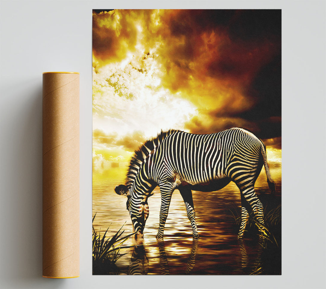 Our Zebra In The Golden River Poster is printed 260 GSM premium lustre paper that offers vibrant colours and exceptional detail.
