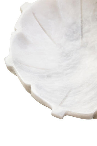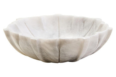 This handcrafted natural marble bowl is inspired from lotus petals, with a sculpted edge and smooth finish. Its wide form makes it ideal as a centrepiece or accent bowl, bringing a refined element to dining tables, consoles, or display shelves. *This product is handcrafted, colours may vary due to the nature of the product*