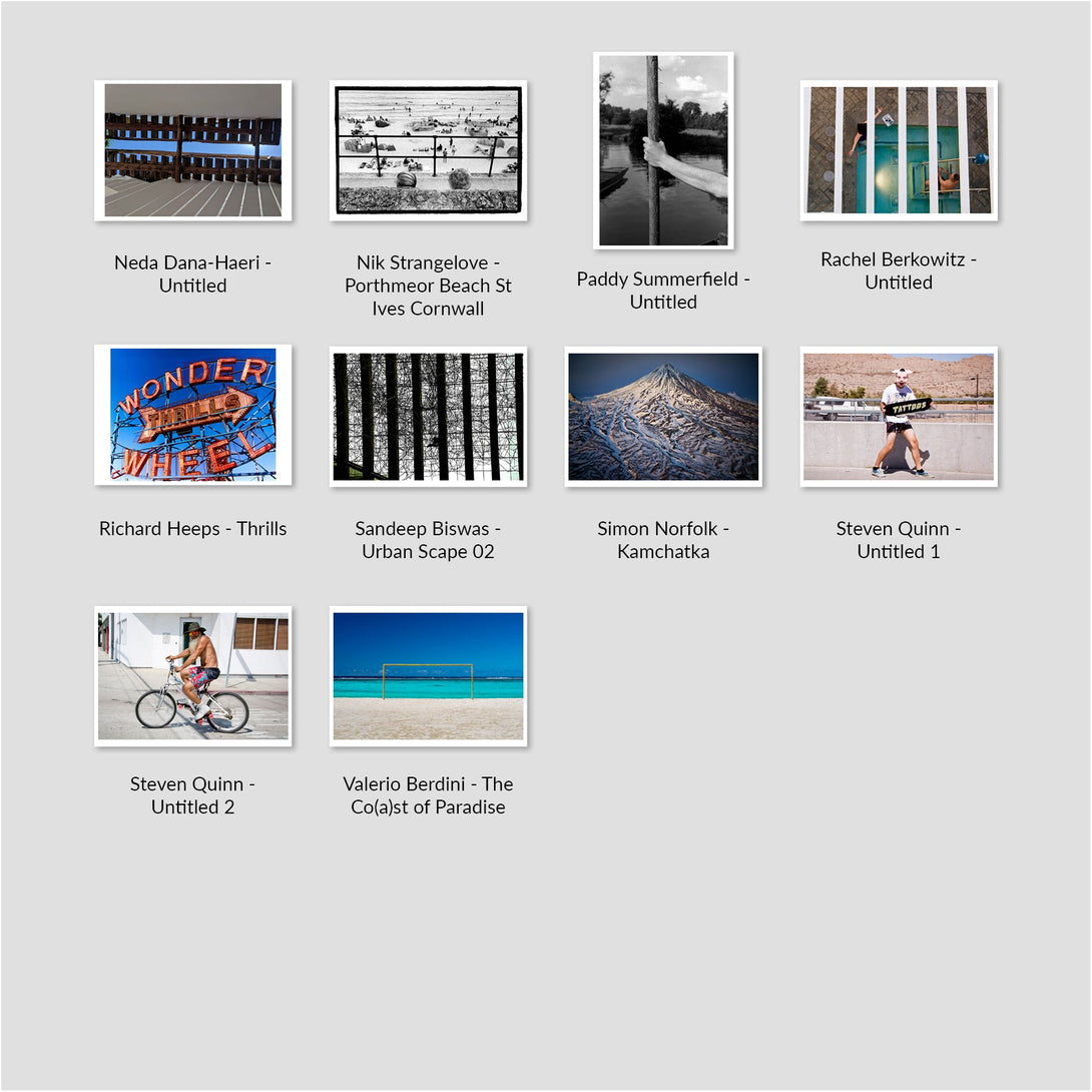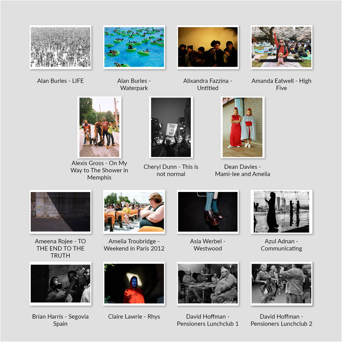 Alan Burles - Waterpark, Alan Burles - LIFE, Alexis Gross - On My Way to The Shower in Memphis, Alixandra Fazzina - Untitled, Amanda Eatwell - High Five, Ameena Rojee - TO THE END TO THE TRUTH, Amelia Troubridge - Weekend in Paris 2012, Asia Werbel - Westwood, Azul Adnan - Communicating, Brian Harris - Segovia Spain, Cheryl Dunn - This is not normal, Claire Lawrie - Rhys, David Hoffman - Pensioners Lunchclub 1, David Hoffman - Pensioners Lunchclub 2, Dean Davies - Mami-lee and Amelia, Dee Elegia - Happiness, Ed Kashi - Pakistan 1997, Ed Kashi - Crimea 1993, George Bull - Dora Barcelona, Imantas Selenis - Docklands, Jo Underhill - Beton Brut, Katelyn Wang - On top of the World, Ken Kajoranta - Untitled, Lill Veronica Skoglund - Lys, Liz Orton - Untitled, Lottie Davies - Untitled, Lottie Hampson - Horse in Tarifa, Martin Parr - Istanbul, Mathias Wasik - Untitled, Mathias Galan - Don't Leave, Matt MacPake - Untitled, Neda Dana-Haeri - Untitled, Nik Strangelove - Porthmeor Beach St Ives Cornwall, Paddy Summerfield - Untitled, Rachel Berkowitz - Untitled, Richard Heeps - Thrills, Sandeep Biswas - Urban Scape 02, Simon Norfolk - Kamchatka, Steven Quinn - Untitled 1, Steven Quinn - Untitled 2, Valerio Berdini - The Co(a)st of Paradise |