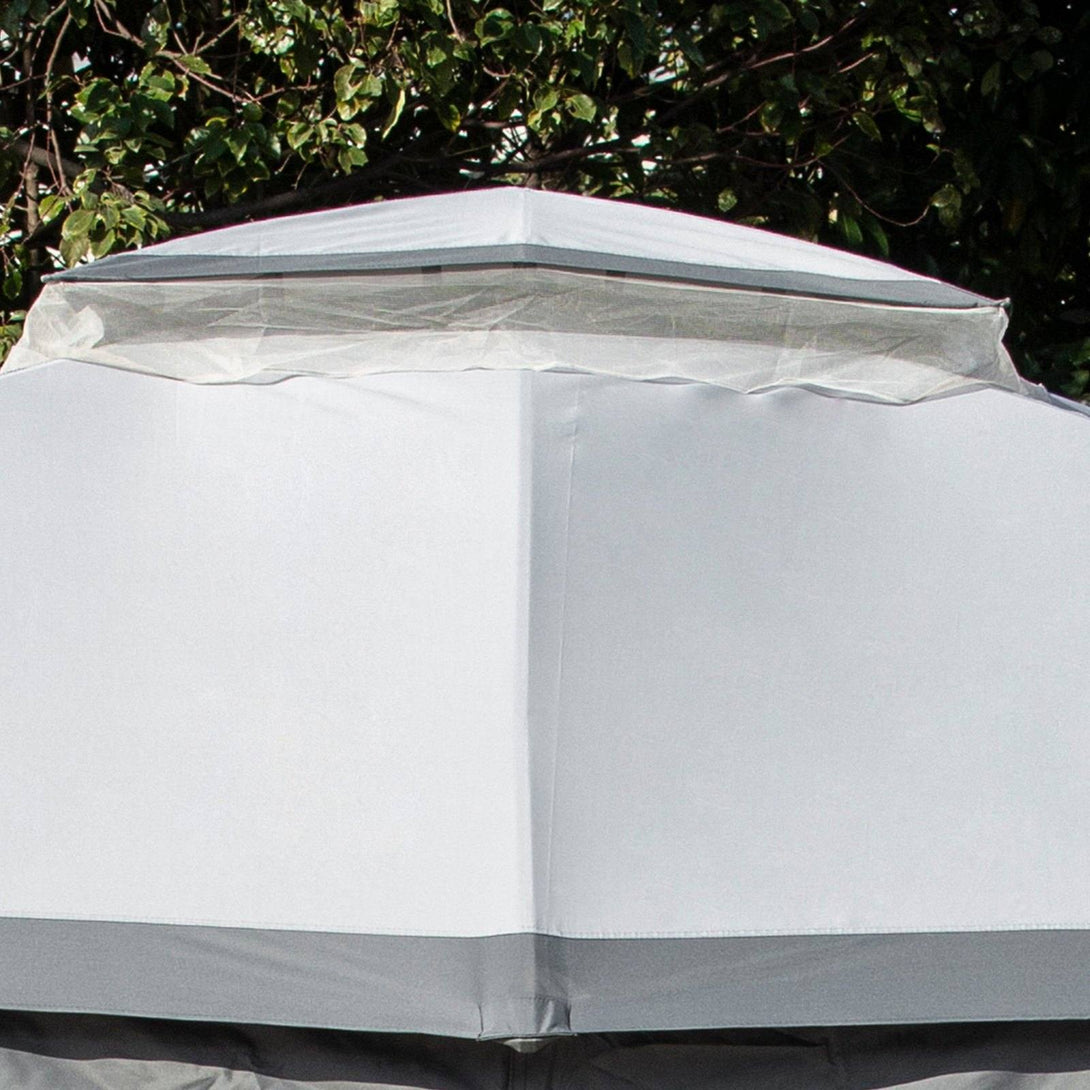 This practical garden gazebo from Outsunny will provide comfort and cool to you. The sturdy steel structure with included ground stakes for stability. The two-tier roof of the strong gazebo allows air to enter inside, so you have a cool and dry spot inside. The mesh side walls with zippers for easy access and good breathability, securely fixed on the frame with ring buckles. It's time to take your outdoor parties up a notch with this stylish gazebo.