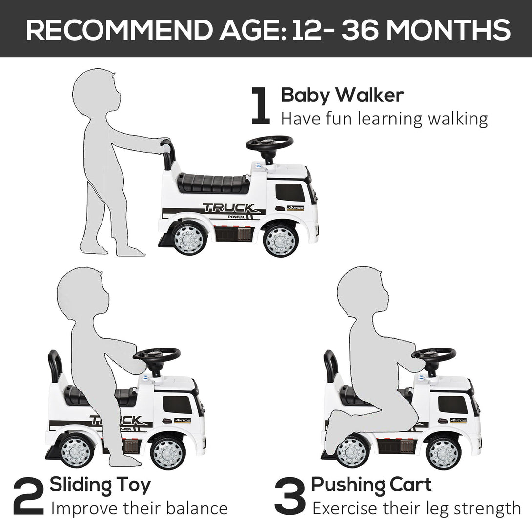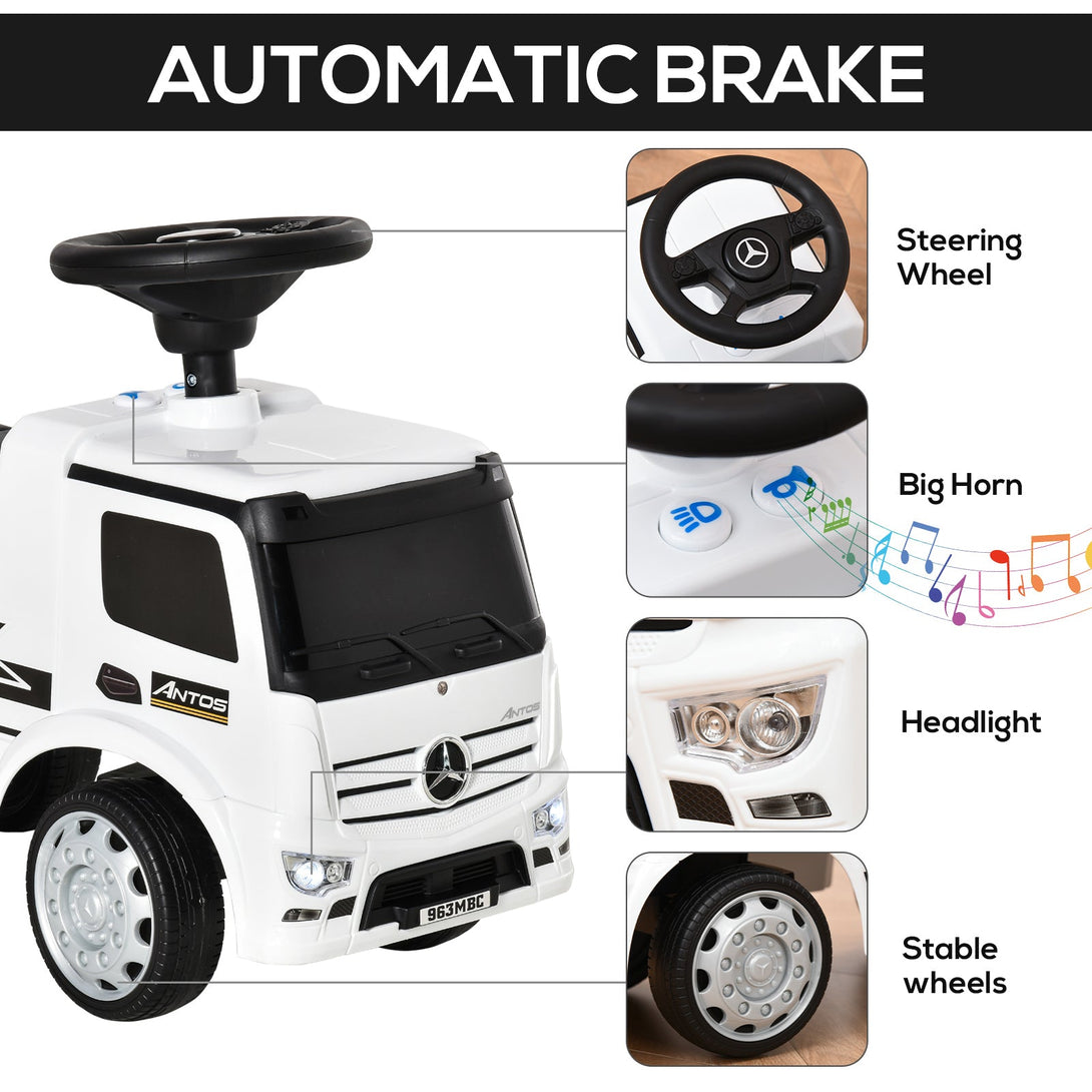 3-In-1 Ride On Car Kids Mercedes Truck Storage Handle For 12 - 36 Months White