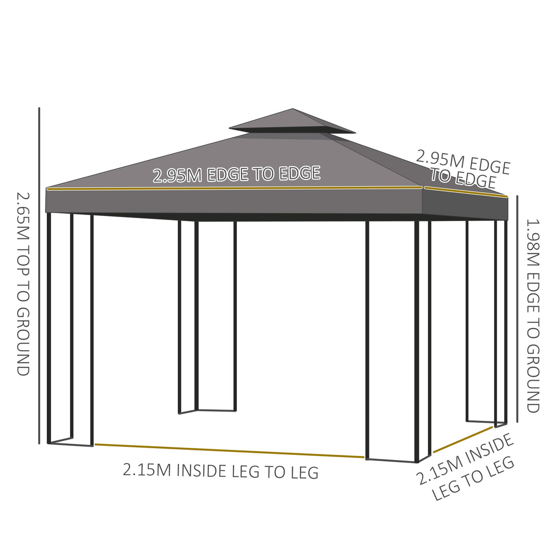 3 x 3 m Garden Metal Gazebo Marquee Patio Wedding Party Tent Canopy Shelter with Pavilion Sidewalls Brown