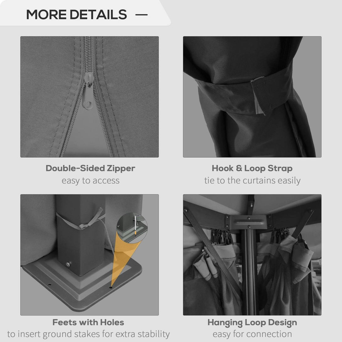 This Outsunny patio gazebo is a great way to expand outdoor space with elegance. A blend of aluminium and steel for the frame makes it extra sturdy, formed into a spacious 3m x 3m size - you can host plenty of people at once. The polyester canopy creates mild shelter below, with its two-tier design helping to promote airflow in and out. Curtains create privacy, each with inner netting to shield you from annoying bugs and more. The garden pavilion is completed with anchoring accessories.