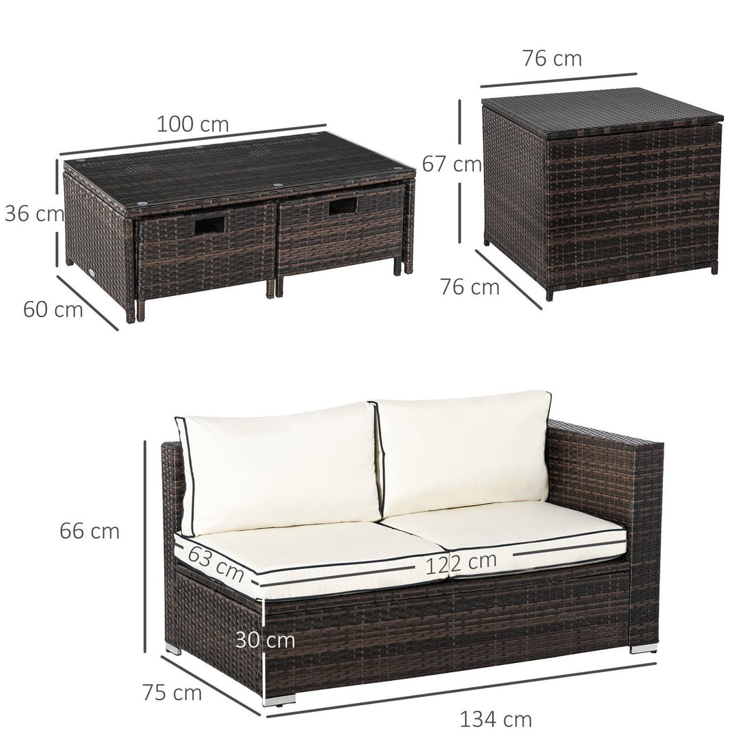 4-Piece Rattan Wicker Garden Furniture Patio Sofa Storage & Table Set w/ 2 Drawers Coffee Table