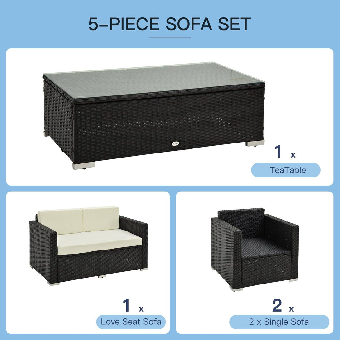 Boring patio? Brighten your backyard with Outsunny's 4-Piece Cushioned Garden Rattan Furniture Wicker Sofa Sectional Patio Set and make the outside of your home just as inviting as the inside. Oftentimes, due to uncomfortable seating or simply a lack of furniture, many outdoor environments go underused or ignored completely. Outsunny believes that you can change all that with a simple, budget-friendly investment in one of our designer garden rattan furniture sets.