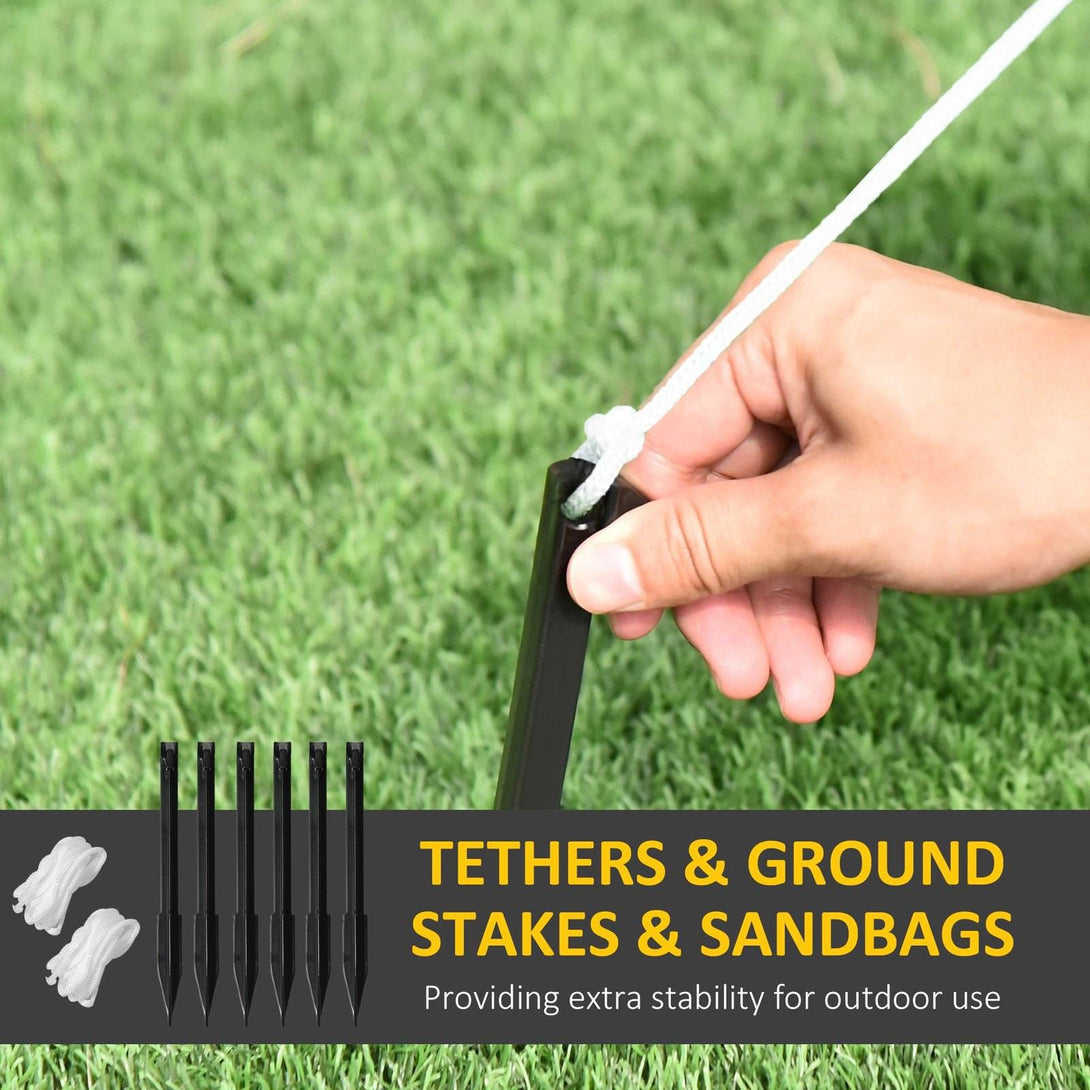 • Six ground stakes, two guy ropes and a sandbag to pin and stabilise to ground