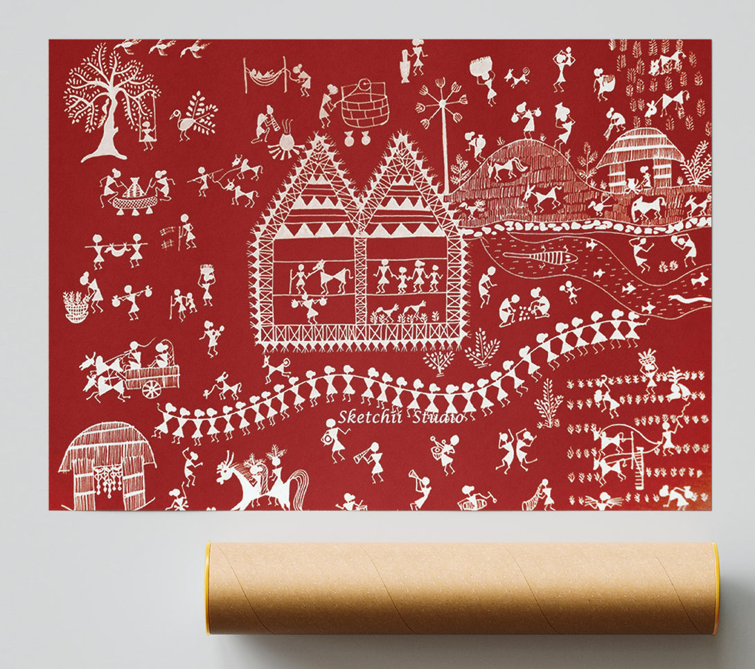 Our Aboriginal Warli Tribal Village Celebrations Poster is printed 260 GSM premium lustre paper that offers vibrant colours and exceptional detail.