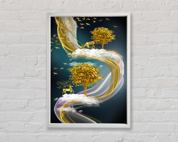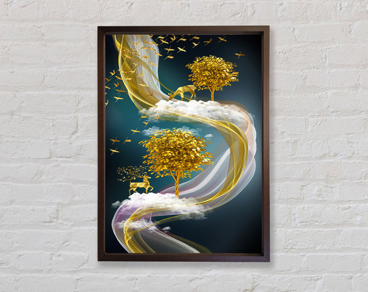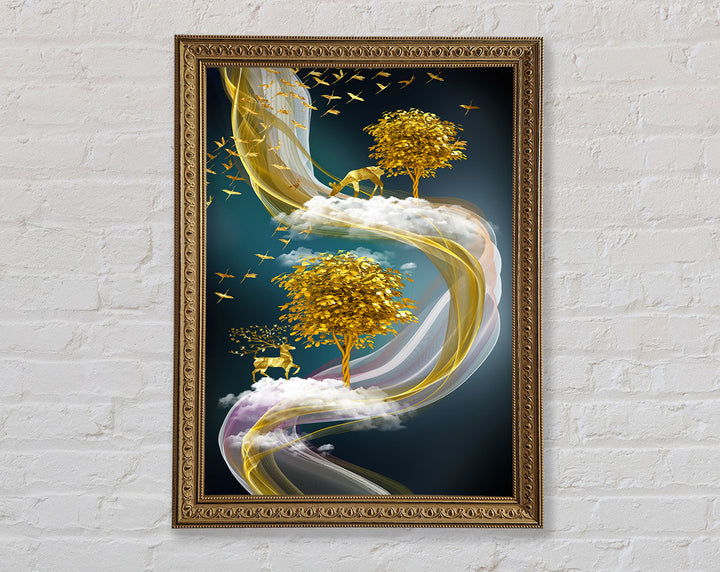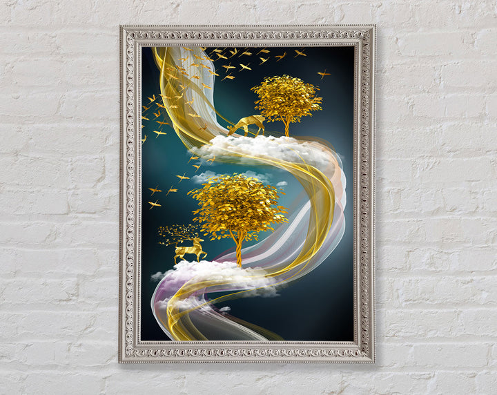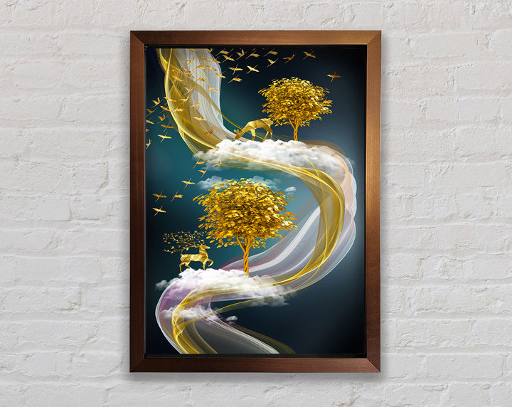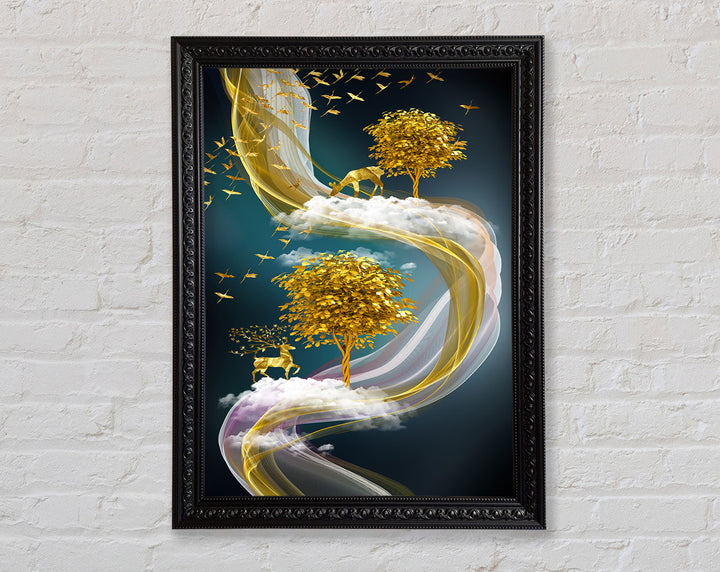 Abstract Swirl Stags Framed Print