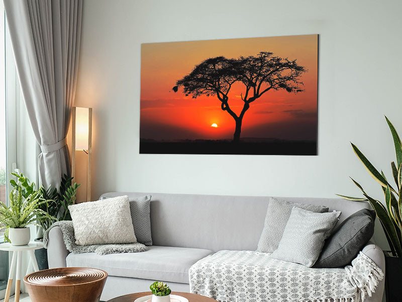 African Sunset Printed on brushed aluminium dibond. A modern way to display art and easy to maintain.