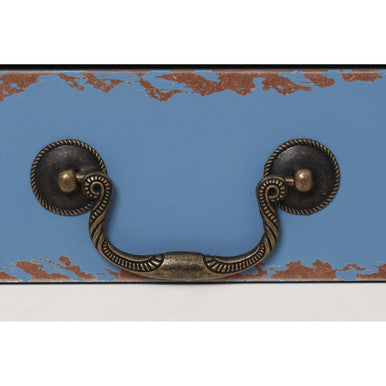 The single drawer side table is made from natural wood ensuring sturdiness and stability. The frame is given a clean and smooth white finish which is complemented by the distressed detailing on the drawer. The single blue drawer features a decorative metal handle.