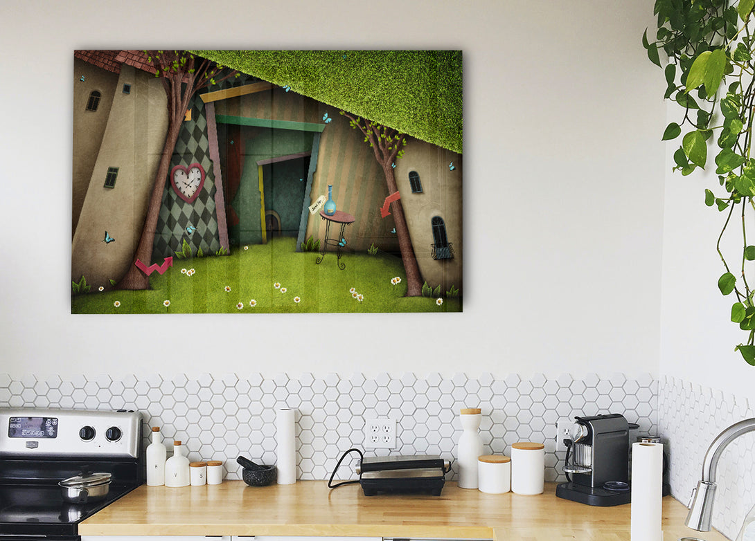 Alice In Wonderland The Small Door acrylic print, UV printed onto 5mm thick acrylic glass. Comes with everything you need to hang on your wall.
