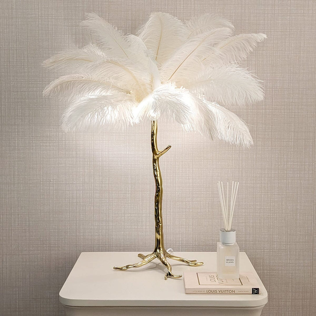 This exquisite lamp features soft, luxurious cream feathers that cascade elegantly, creating a warm and inviting glow.